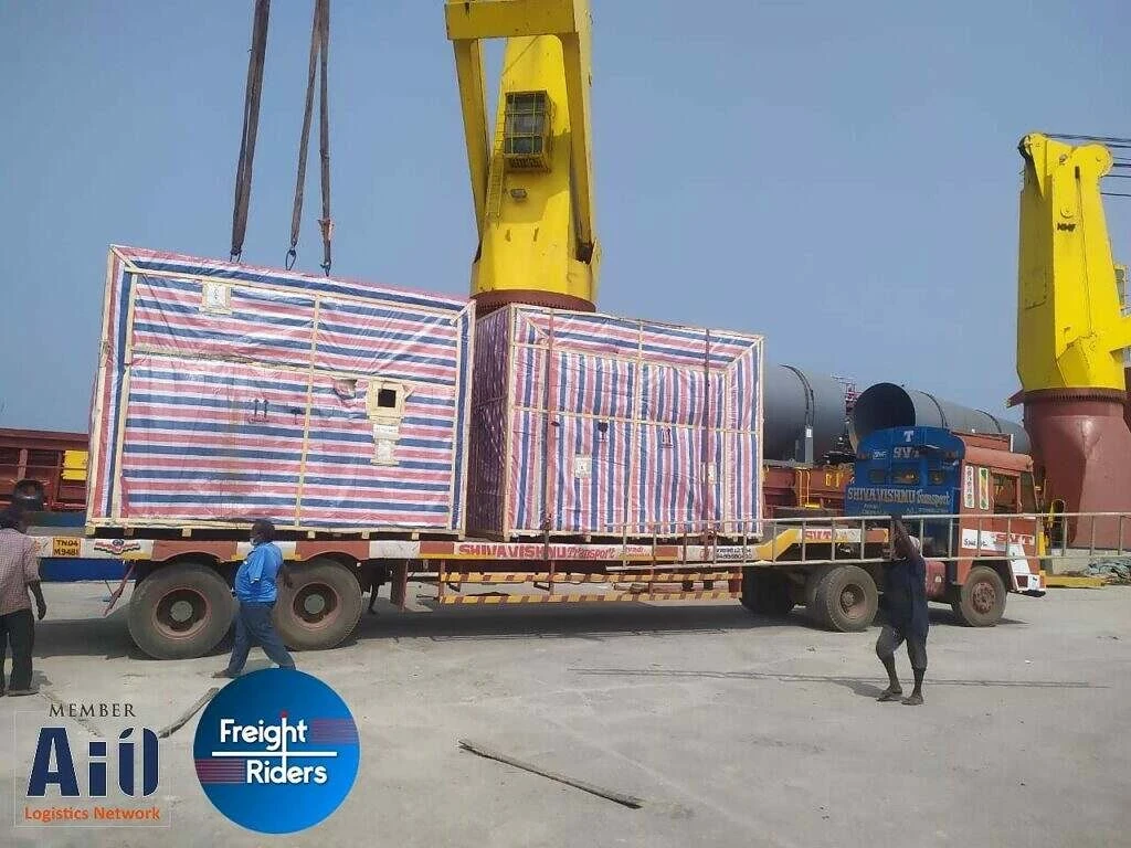 Freight Riders Logistics handled import breakbulk cargo at Chennai Airport and the port of loading was Shanghai, China. There was a total of three pieces and one of the cargoes was 60 tons so they had to off-load the cargo hook to hook from breakbulk vessel suing a one-sided crane in vessel. The delivery to the customer place was arranged within 48 hours of vessel berthing at Chennai port.
