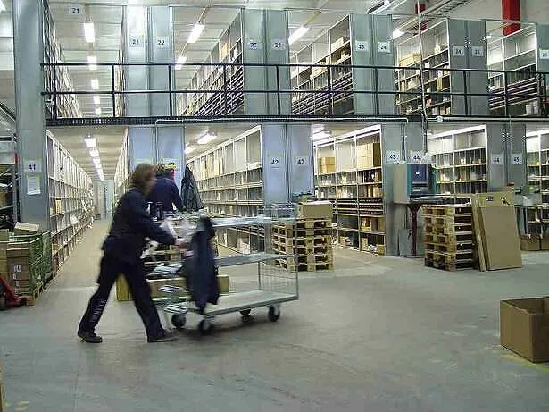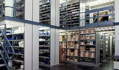 These multi-tier installations are useful, and further separated by rows within each column. This kind of shelving is quite cost-effective and ideal for our 15m high warehouse roof, making best use of the available height. When it comes to the economics of shelving, this method is the best fit.