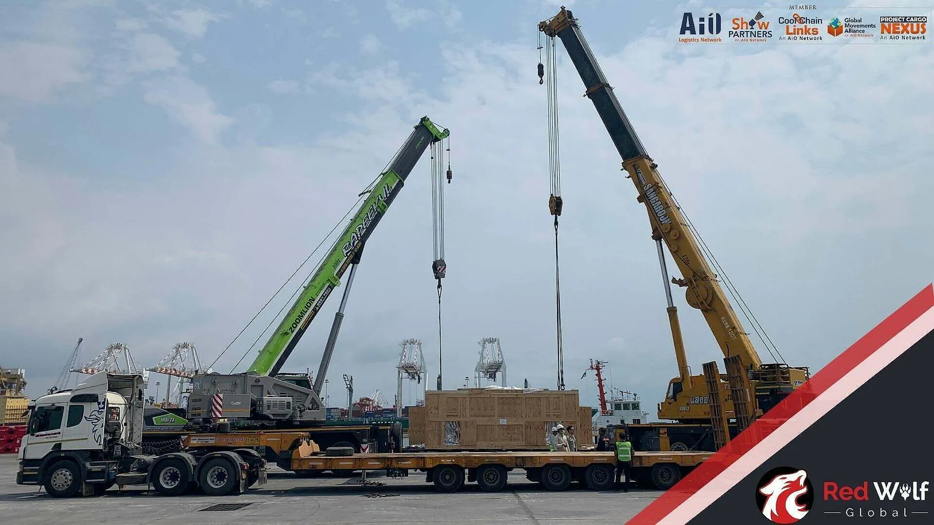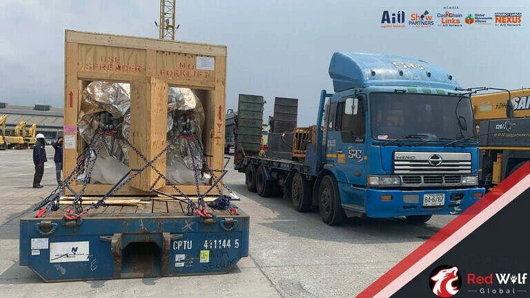 Due to the weight of the cargo, police permission was required for the road transport. The Red Wolf Global team was granted this permission as well as a police escort for the 75 km trip from Laem Chabang port to Rayong province. The Red Wolf Global Thailand team had to locate a special truck trailer due to the cargo weight.
