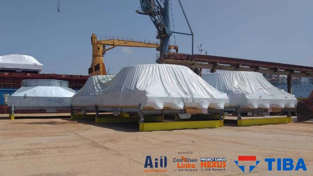 TIBA International Algerie handled ten air coolers which weighed 41.3 tons each. The total weight of the shipment was 413 tons. The coolers were loaded in Marghera, Italy at the port of Mostaganem.