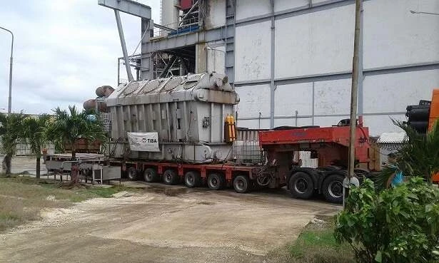 Using both the central highway and secondary roads, TIBA moved the 178 tons of equipment 295 km to its final destination in the substation of 220Kv in the Thermoelectric Power Plant at Nuevitas, Camagüey, thus traveling narrow roads in a 12-axle modular trailer.